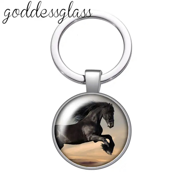 Stijlvolle sleutelhanger met een cabuchonafbeelding van een zwart paard, ideaal voor paardenliefhebbers. De diepe, donkere tinten geven de sleutelhanger een krachtige en elegante uitstraling, waardoor hij een echte blikvanger is. Praktisch om sleutels bij elkaar te houden of te bevestigen aan een tas of rugzak.