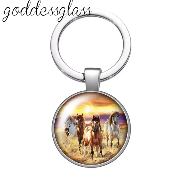 Sfeervolle sleutelhanger met een paardenontwerp. De cabuchon met heldere print en stevige afwerking maakt deze sleutelhanger ideaal om je sleutels, tas of rugzak een elegant en herkenbaar accent te geven. Leuk voor jezelf of als cadeau voor paardenliefhebbers.